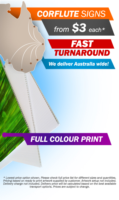 Corflute signs are now more affordable than ever before! We print directly on the corflute boards, which allows us to save you time and money. Check out the pricelist to find out more!