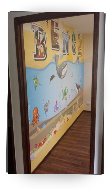Full colour printed on a special, wall paper sticker material. Easy to apply and easy to peel. Perfect to cover walls without doing any painting.